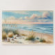 Soft coastal serenity unfolds through a dreamy watercolor scene of rolling sand dunes, sea oats, scattered shells, and a calm horizon where gentle waves meet a pastel sky. Airy brushstrokes and blended hues of blush, sky blue, seafoam, and warm sand create a tranquil, cottagecore coastal mood that feels both nostalgic and peaceful. The composition balances openness and intimacy, inviting quiet reflection and a sense of seaside stillness. Whimsical yet grounded, this artwork carries a soothing, faith-friendly calm that complements cozy coastal, boho, and shabby chic aesthetics while evoking rest, simplicity, and gentle beauty by the shore. AI generated artwork.