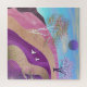 Ce magnifique paysage abstrait dépeint un paysage vallonné avec des arbres printaniers en fleurs et des oiseaux dans les tons rose, violet, beige, tan, or, vert et bleu.
