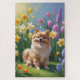 Un chien gai s'installe paisiblement sur une pelouse verdoyante, entourée de fleurs printanières colorées sous un ciel bleu doux. Cette peinture à l'huile numérique saisit un moment de sérénité avec des coups de pinceau expressifs, des couleurs chaudes et un sentiment de joie douce.
