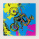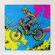 Un jeune motocross vole haut au milieu des éclaboussures colorées de peinture. Idéal pour les enfants et les sportifs de tous âges.
