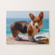 Puzzle Pembroke Welsh Corgi puppy standing on table