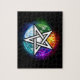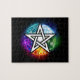 Pentagramme lumineux dessiné de façon artistique avec cinq éléments magiques, eau, terre, feu, astral, air sur arrière - plan noir. Pentagramme de Wiccan. Wicca