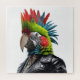 Funny Punk Rocker Parrot avec coiffure mohican portant une veste en cuir.