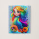 Belle et colorée Fluffy Petite Sirène mignonne avec des couleurs arc-en-ciel et des mouches à la mouche dans un royaume de l'océan magique, style Imaginaire d'art de fille. Affiche Colorée De Sirène Pour Salle D'Enfants, Salle De Bébé, Puzzle De Sirène,