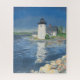 Puzzle du phare de Grindle Point. Ce puzzle à puzzle présente le phare de Grindle Point brillant au soleil de fin de matinée d'une journée de printemps à Islesboro, Maine. Le tableau utilise une palette brillante de bleus, de verts, de gris et d’oranges pour créer une vue magnifique et calme de la tour unique du phare carré et de la maison du gardien de phare. Le phare, construit en 1874, avertit les marins de se tenir à l'écart des hauts-fonds rocheux entre Gilkey Harbour et West Penobscot Bay. Des pierres colorées d'orange, de blanc et de bleu brillent au premier plan, témoignage de la côte agitée de l'île du Maine. Située à gauche du phare, une cloche d'avertissement de 400 kilos à la main reflète le bleu profond de l'eau et les rochers gris ardoise en dessous.