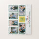 Artistic, élégantes vacances famille photo collage puzzle avec six images, et les textes "Live Love Learn Laugh", "202Y", "In gratitude", et "Sam, Jean, et Joanna Jacobson" sur un rectangle doré (assurez-vous de personnaliser les noms et l'année!). Avec un léger parfum moderne de flocons blancs et argentés sur un arrière - plan blanc.