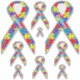 Puzzle piece autism awareness ribbons. Whether you choose the 3" x 3" extra-small or the 14" x 14" extra-large, each sheet includes nine vinyl custom cut stickers in various sizes. The sizes of the decals themselves depends on the size of the sheet you order. Which means you can order your stickers to fit anything from your phone case or laptop to your locker or luggage. The six largest decals in this set are pre-formatted with "Autism" but you can use the provided text field to easily change that or leave the field blank if you prefer no text on the stickers.