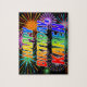 This lively, fun, birthday-themed jigsaw puzzle design has the message "HAPPY BIRTHDAY, KAREN" having a colorful rainbow spectrum inspecred gradient pattern, et a vibrant bursting celebratory fireworks erbackground . A vibrant puzzle like this might be a fun way to send birthday greetings to somebody named Karen. 2