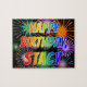 Ce design de puzzle passionnant, amusant, sur le thème de l'anniversaire a le message "HAPPY BANTHDAY, STACY" avec un spectre coloré arc-en-ciel inspiré motif dégradé, et un feu d'artifice festif animé inspiré motif arrière - plan. Un puzzle vibrant comme celui-ci pourrait être utilisé pour envoyer des voeux d'anniversaire à quelqu'un nommé Stacy. [~Z0000465]