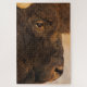 Photo de fond du visage d’un Buffalo. Pris au parc national d'Antelope Island dans l'Utah tôt le matin. Le ciel bleu du matin se reflète dans son oeil.