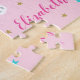 Ce puzzle personnalisé présente une licorne arc-en-ciel avec étoiles et parties scintillant en faux or. Personnalisez le texte avec un nom.