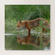 Renard - belle photo couleur nature d'un renard sauvage et réflexion que le renard est en train de pénétrer dans un étang entouré de verdure.