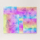 Un design de patchwork géométrique audacieux combiné à un motif d'aquarelle dans un arc-en-ciel aux couleurs pastel douces. Des papillons très subtils ajoutent une couche supplémentaire d'intérêt visuel à ce beau puzzle. Vous pouvez redimensionner, repositionner ou même enlever les papillons si vous le souhaitez. Vous pouvez également jouer avec les filtres d'image pour différents effets de couleur sur les papillons.
