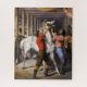 Publicité vintage montrant deux hommes forçant Rosenberg's Great East India Horse Invigorator d'une bouteille dans la bouche d'un cheval.