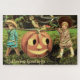 "Salutations d'Halloween." Deux garçons portant un grand Jack-O-Lantern. Carte postale vintage, vers 1910.