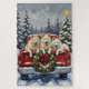Embrace the snowy charm of the holiday season with this stunning Samoyed Christmas design! This festive scene features three beautiful, smiling, snow-white Samoyeds sitting contentedly in the back of a classic red pickup truck, perfectly suited for the snowy winter forest setting. The vintage truck is charmingly decorated with a vibrant Christmas wreath, adorned with sparkling red and gold ornaments and warm, glowing lights. Abundant snowflakes fall around the scene, truly creating a magical winter wonderland. With a decorated Christmas tree in the background, this design is perfect for capturing the joyful spirit of the holidays and makes an excellent Christmas gift for any Samoyed owner, dog lover, or admirer of festive and magnificent dog art.