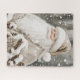 A vintage Santa Claus in the snow among pine trees Christmas holiday keepsake jigsaw puzzle to enjoy with your family during the holidays, or to gift to someone who loves puzzles and holiday fun.