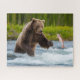 Ce puzzle Saumon de pêche Grizzly Bear offre une image de tournage d'action directement à partir d'une série documentaire nature. Un énorme grizzli, debout dans une rivière qui se précipite, est gelé dans le temps alors qu'il pivote à un saumon qui saute. Une image vibrante et pleine d'action mise en évidence contre un arrière - plan par ailleurs paisible d'une forêt dense de grands pins. Ce puzzle d'ours brun ravira et séduira tous les amateurs de grizzlis, surtout ceux qui aiment les casse-tête nature.