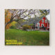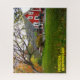 Profitez d'un peu de temps sur ce puzzle d'une petite maison rouge assise derrière un arbre incliné qui perd ses feuilles pendant la saison d'automne à Princeton, Terre-Neuve.