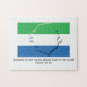 Patriotique SIERRA LEONEAN FLAG Jigsaw Puzzle, montrant le plan combiné avec le drapeau de SIERRE LEONE. En dessous, il y a une SCRIPTURE PERSONNALISABLE qui dit BÉNÉFICE EST LA NATION DONT DIEU EST L'Éternel, de Psaume 33:12. Le texte peut être facilement personnalisé avec un nom de famille ou une devise. Éléments correspondants disponibles.