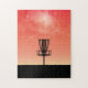 Profitez de ce design graphique de golf sur disque, avec une silhouette de panier et un ciel coloré.