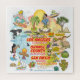 Cette scène lumineuse et colorée offre une vue spectaculaire de la Californie du Sud - personnages farfelus sur la plage et le désert de SoCal qui présente Los Angeles, Orange County, San Diego, Père Noël Barbara, Palm Springs, El Centro, Beverly Hills, Laguna Beach, La Jolla, Anza Borrego, Joshua Tree parcs ainsi que les villes frontalières de Tijuana, Tecate, et icali. Cette charmante scène a tout pour plaire - un surfeur pend dix tandis qu'un orque saute de l'eau, un randonneur est remarqué par un OVNI, et bien plus encore...