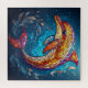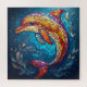 Une oeuvre colorée en vitrail représentant un dauphin vivant entouré d'un mélange d'éléments aquatiques et d'un arrière - plan bleu éthérée.