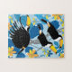 Toucans sur un arrière - plan de feuilles et de fleurs de jungle bleu et jaune. C'est un grand casse-tête pour quelqu'un qui vit avec la forme la plus courante de cécité de couleur.