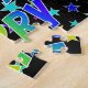 Ce puzzle dynamique et amusant sur le thème de l'anniversaire a le message "HAPPY BANTHDAY, TERRY" avec les personnages ayant un spectre arc-en-ciel coloré inspiré motif dégradé, ainsi qu'un motif arrière - plan de terrain étoilé animé. Un puzzle aussi excitant pourrait être utilisé pour envoyer des voeux d'anniversaire à quelqu'un nommé Terry. [~Z0000468]