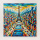 L'image est un tableau plein de vie de Paris, avec en son centre l'emblématique Tour Eiffel. Autour de la Tour, le paysage urbain comprend plusieurs bâtiments et la Seine qui traverse la scène. On notera les multiples ponts qui enjambent la rivière, et l'utilisation de couleurs vives et audacieuses pour dépeindre les cours d'eau, qui contiennent différents bateaux. Des arbres apparaissent dans différentes zones autour de la tour et devant les bâtiments, contribuant ainsi à la richesse des couleurs du tableau. La perspective offre un sens tridimensionnel avec un angle droit 3/4, ce qui améliore la profondeur et le réalisme de la peinture.
