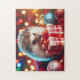 Vous pouvez imaginer un charmant puzzle qui représente un petit hérisson ouvrant un cadeau de Noël, encerclé de billes décoratives, sur un décor éclatant de lumières scintillantes. Un puzzle festif idéal pour le divertissement.