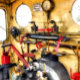 Vue du conducteur du train à vapeur sur les commandes de la chaussée du train à vapeur.