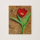 Tulipe rouge de printemps, contre une roche brune au lac Arrowhead. Photo de Sandy Closs. Pâques, floral, fleurs rouges, Printemps, Saint-Valentin, valentines, mariage, mariage, Saint Valentin