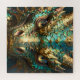 A puzzle with a cool close up illustration of a turquoise and metallic gold dragon face with realistic eyes. Fantasy art realism dragon art.
