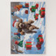 Un gracieux caniche court joyeusement à travers la neige, portant un casquette de Noël rouge vif qui met en valeur l'esprit festif de la saison. Avec sa posture élégante et son charme vivant, cette scène hivernale reflète magnifiquement la personnalité de cette race intelligente et aimée, tout en capturant la magie des vacances.