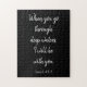 Amusez-vous pendant des heures à assembler ce très difficile casse-tête biblique. Il présente une écriture du Livre d'Isaïe, "Quand tu traverseras les eaux profondes, je serai avec toi". Il est écrit en caractères cursifs blancs sur un arrière - plan noir.Commandez les vôtres dès aujourd'hui !