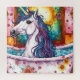 Une adorable licorne avec une crinière bleue et violette trempe dans la baignoire