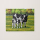 Puzzle Vache Holstein et veau mignon en pâturage d'été