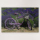 Ce puzzle stimulant présente une moto violette devant un champ de plantes de lavande violet brillant. Cette image a été prise dans Sequim, WA pour pendant le Sequim Lavender Festival.