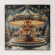 Puzzle de Noël. Joli aquarelle d'aquarelle illustrant un manège vintage à l'ancienne tournent autour couvert de neige lors d'une nuit d'hiver nostalgique.