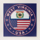 Badge de la Virginie Occidentale avec le drapeau de la Virginie Occidentale et le drapeau des Etats-Unis couleurs, forme arrondie. Emblème de Virginie-Occidentale,