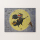 C'est l'heure des sorcières et toutes les sorcières respectables sont dehors et à peu près avec leurs familles ! Cette sorcière en particulier en a beaucoup avec elle alors qu'elle prend l'avion parmi une foule merveilleuse de chauves-souris ! Voyez si vous pouvez tous les trouver ! Un chat, une araignée, un rat, un serpent, une grenouille et une chouette, le tout pour aider à la confection d'une délicieuse brasse de sorcières ! Une image merveilleuse dans le sens traditionnel avec beaucoup de plaisir et de fantaisie. Vous sourirez chaque fois que vous faites ce puzzle. Profitez de cet Halloween en faisant des casse-têtes avec les enfants. Ils auront un temps Spooktacular ! Un grand cadeau ou un prix à une fête d'Halloween ! C'est une photo originale de mon aquarelle / peinture acrylique originale "Night Flight!" et est sous ma copie à droite