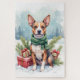 Send festive greetings with this charming Christmas card featuring an American Staffordshire Terrier beside a rustic sled filled with wrapped presents. Soft watercolor textures and gently falling snow create a cozy winter feel perfect for pet lovers. With a blank interior ready for your personalized holiday message, this card makes a thoughtful choice for dog owners, seasonal gifting, and breed-themed stationery collectors.