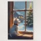 A charming Christmas painting featuring a Westie watching the snowy morning outside. This warm and peaceful artwork beautifully captures the quiet joy of Christmas Day.