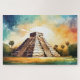 Puzzle with Chichen Itza, famous El Castillo pyramid of Maya Empire, Mexico.
