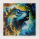 Wolf Howl en tourbillons de couleurs audacieuses, bleu et or Ai Généré Art par minx267