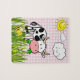 Puzzles Cow Bumblebee Sun Clouds Pink Plaid