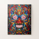 Le crâne de sucre laisse perplexe. Grand crâne coloré puzzles d'art pour toute la famille.