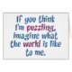 "If you think I'm puzzling, imagine what the world is like to me". This design was created with special needs children in mind for those who don't take the time to understand them. You can find this design on t-shirts, magnets, mugs, buttons, gifts and much more!