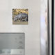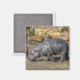 A close up photograph of a cute Pygmy Hippo printed on a square fridge magnet.